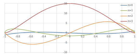 \(P_l(x)\)は\(l\)次多項式なので、\(m>l\)の場合Legendre陪関数は微分によって0になり、これは自明な解なので考える必要がない。